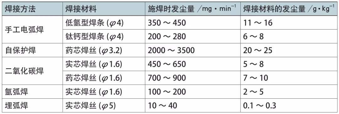 金屬加工的材料特性及工藝需求會產生大量的粉塵和煙氣,是生產車間的主要空氣污染物來源。表1所示為不同焊接方法所產生的污染物,大功率的激光切割、等離子切割、火焰切割等產生的粉塵濃度遠遠超過焊煙。
